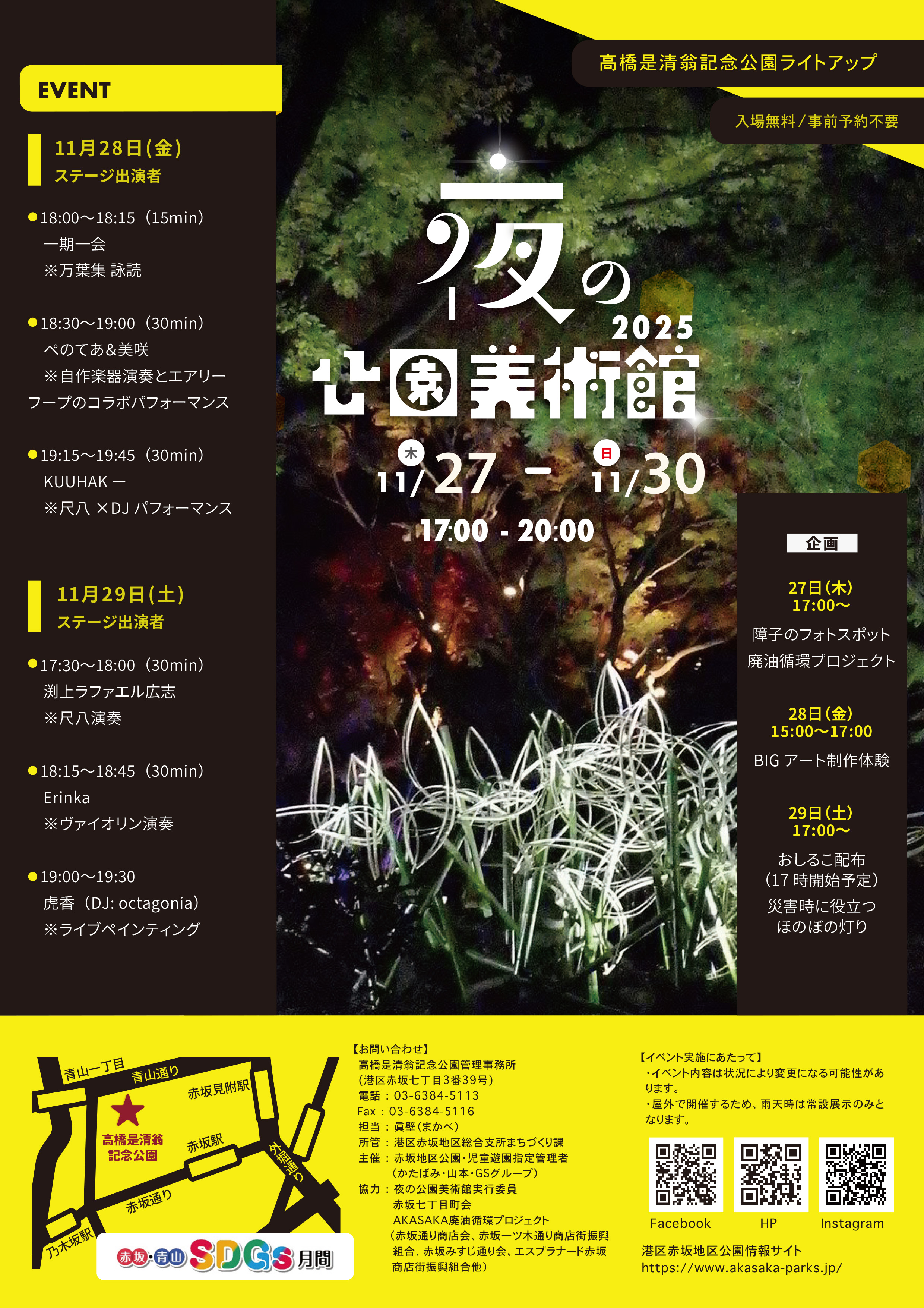 We will be held "Park Art Museum at Night" at Takahashi Korekiyo-o Memorial Park from November 27th to November 30th.