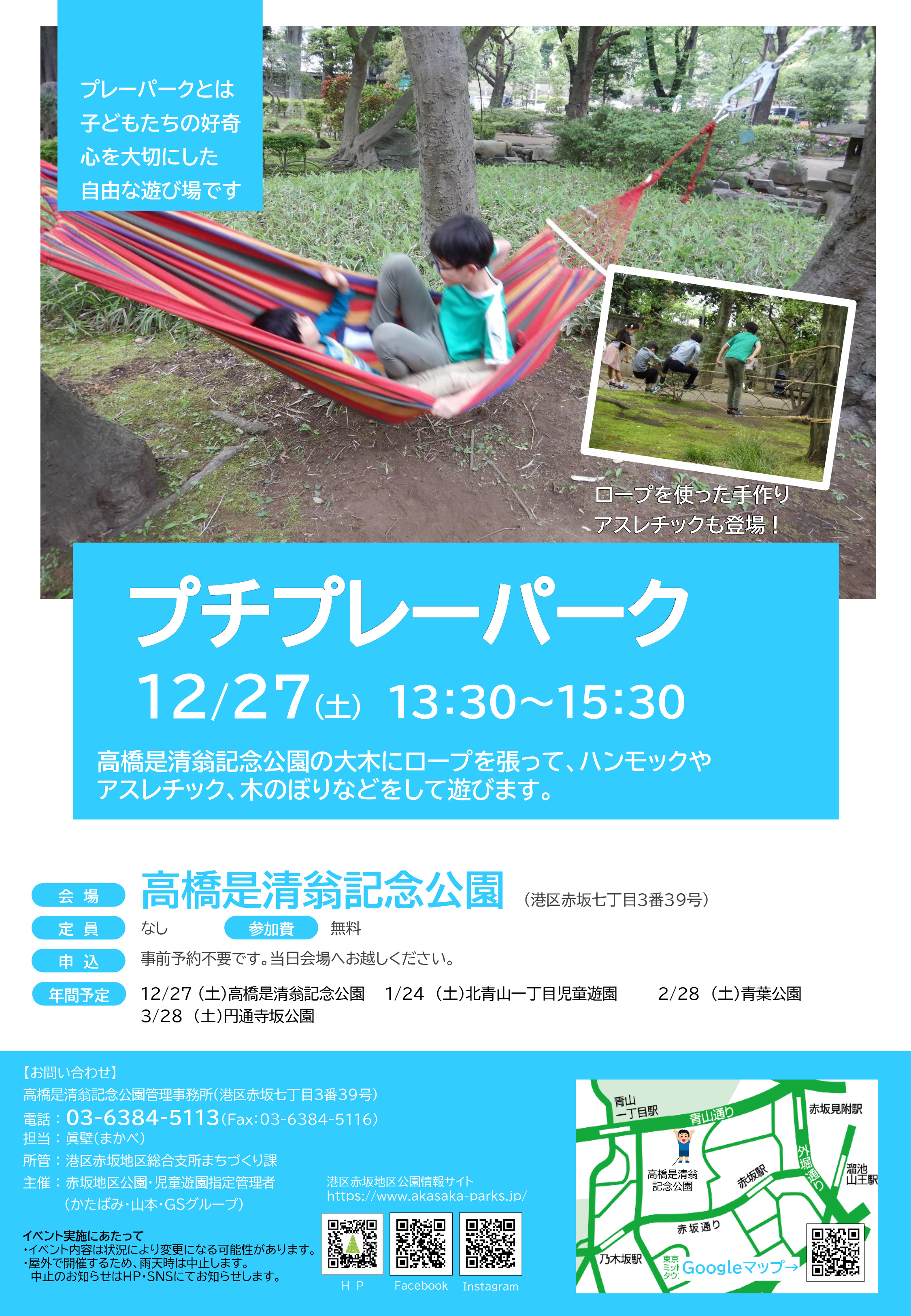 We will be held Ptit Play Park at Takahashi Korekiyo-o Memorial Park on December 27th.