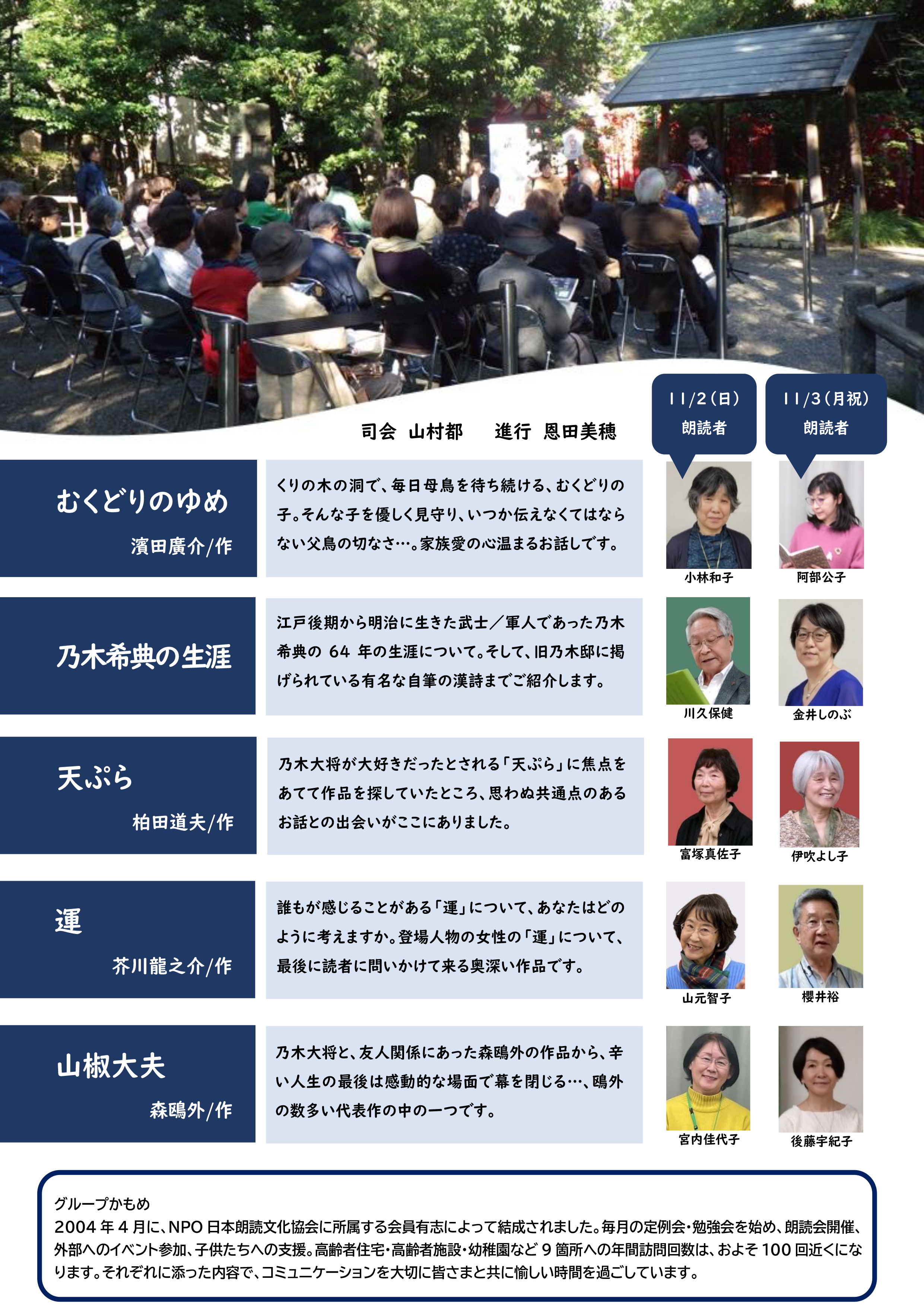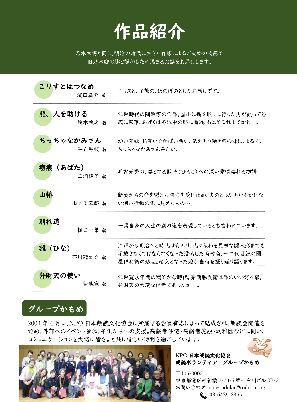 【11月2日(日)・11月3日(月・祝)】 旧乃木邸一般公開 朗読会 開催のお知らせ