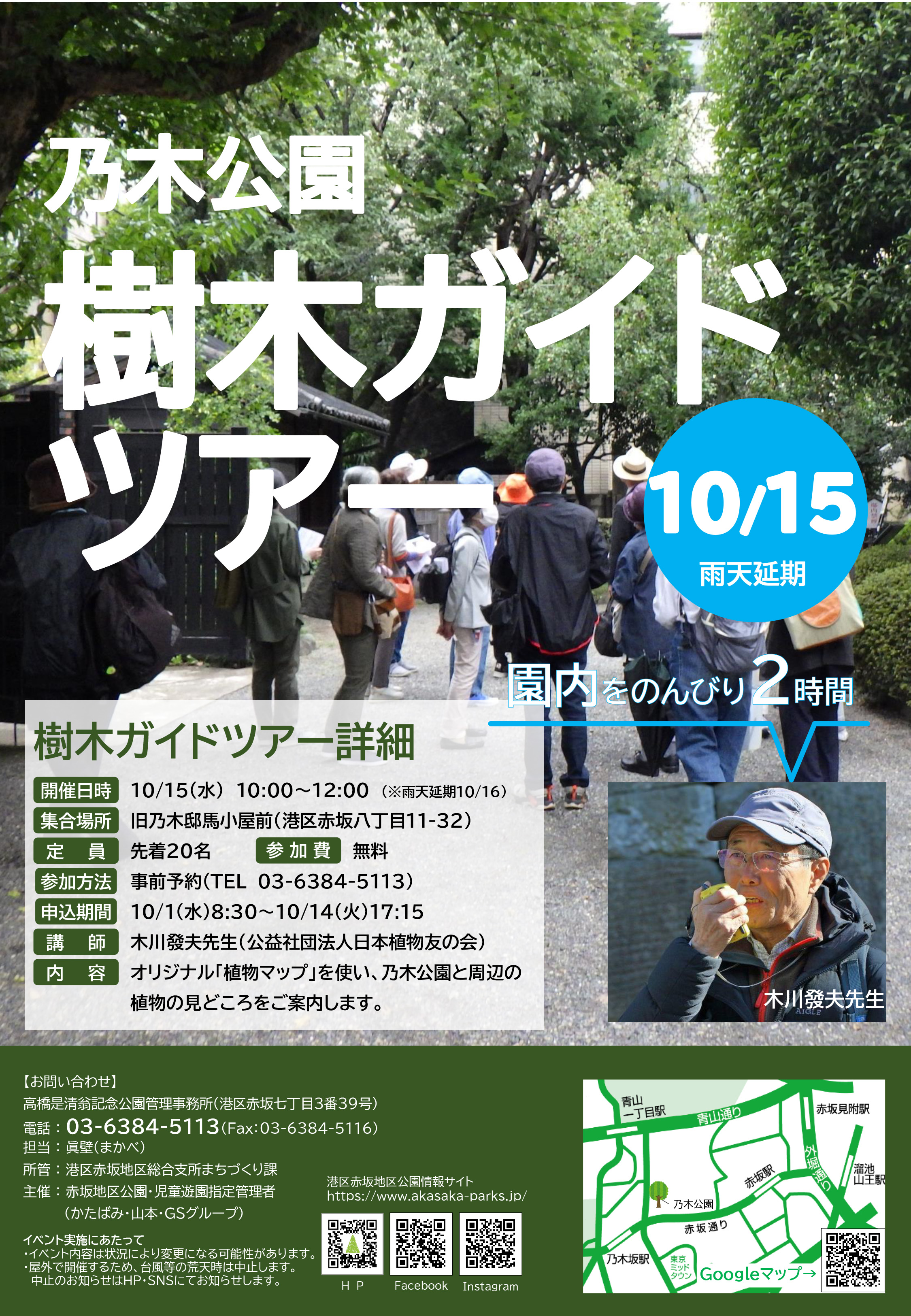 【10月15日(水)】乃木公園樹木ガイドツアー開催のお知らせ ※雨天延期10/16(木)
