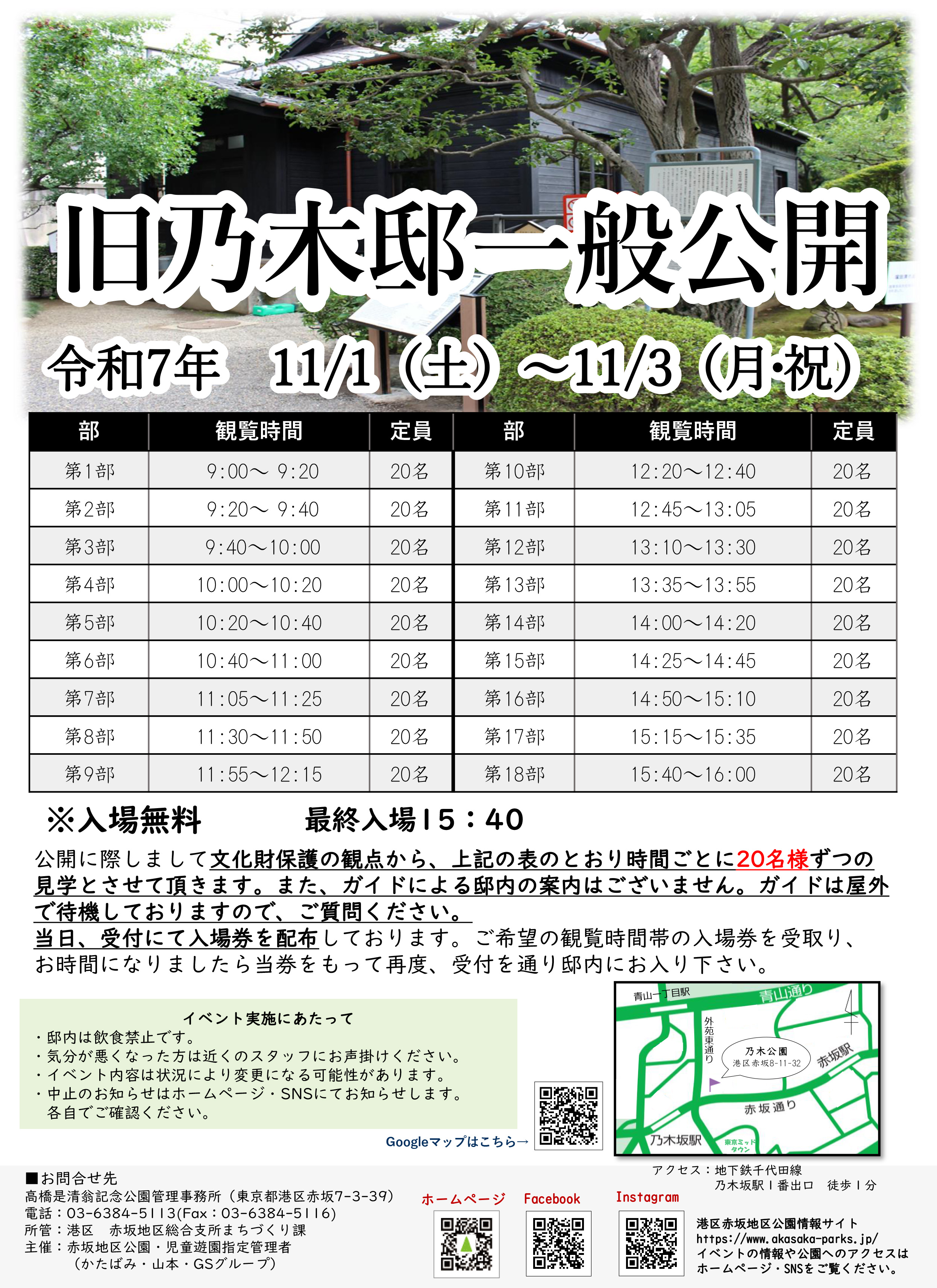 【11月1日(土)~11月3日(月・祝)】旧乃木邸一般公開 開催のお知らせ