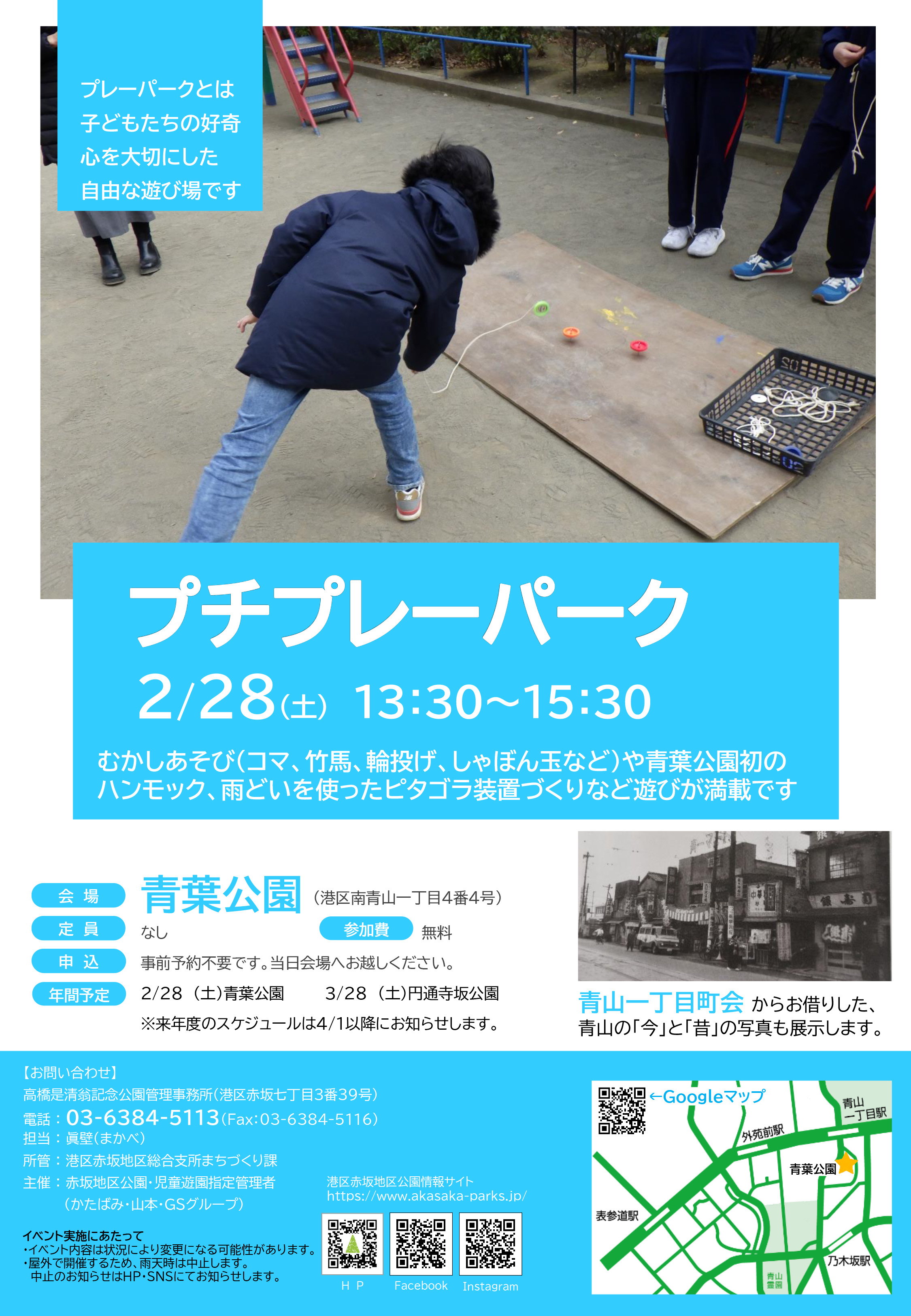 2026年最初のプチプレーパークは、北青山一丁目児童遊園にてお正月あそび、オリジナル「凧づくり」、みなと外遊びの会によるいつもとは違ったプチプレーパークを開催します!